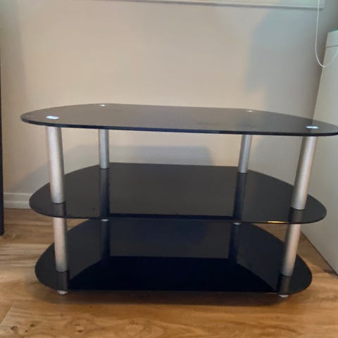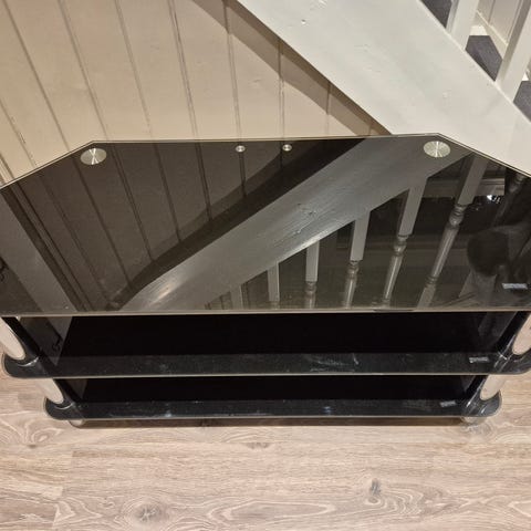 Pent brukt tv benk i herdet sort glass.