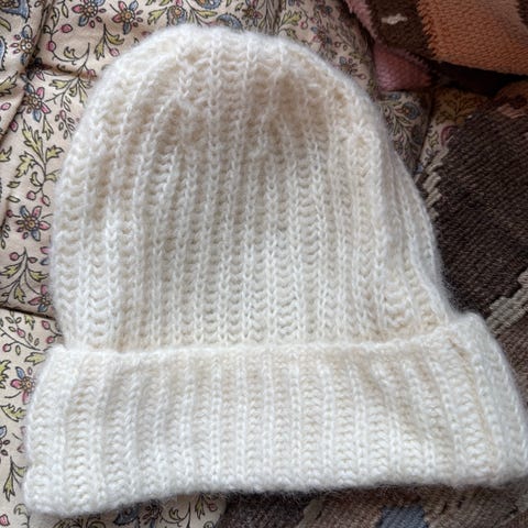 Camilla Pihl lue i blå farge, Luen har en strikket tekstur og er designet for å gi varme og komfort.Ny pris 800 kr. Brukt få ganger som ny