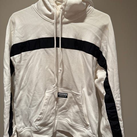 Adidas hettegenser for herre i størrelse S. Genseren er grå og laget av bomull. Den har en hette og ribbestrikkede mansjetter. Brukt 1 gang. Fremstår som ny