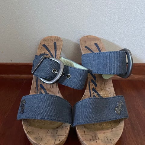 Replay Blue Jeans Hæler i størrelse 37. Skoene er laget av svart skinn og har dekorative nagler. Hælene er av tre og skoene har en åpen tå-design. Skoene er bare prøvd og ikke brukt.