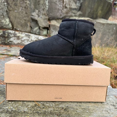 Ugg støvler classic mini str 38 med vannavvisende semsket skinn og saueskinnsfôr. Selges ikke etter størrelse. Pris 2200 kr, men selges for 1500 kr. Kommer i original skoeske. Fin julegave.