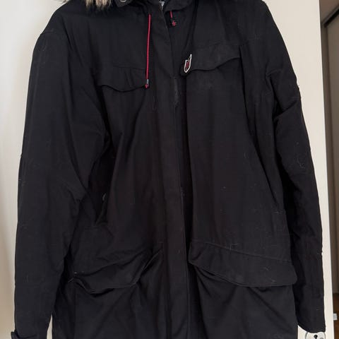 Svart Skogstad Sunnfjord vinterjakke, str M/40, hette med fuskepels kant, som kan taes av.