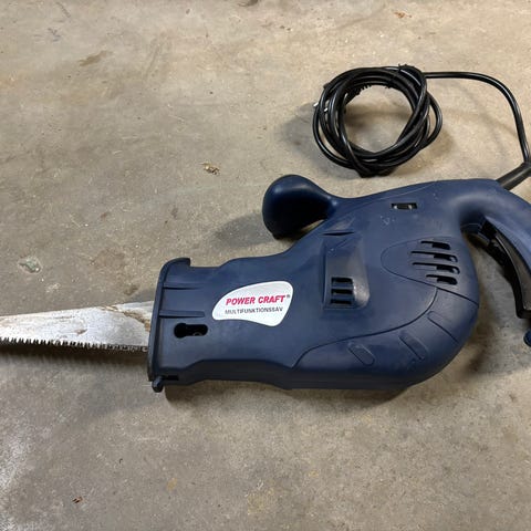 Elektrisk kapp- og gjærsag med sirkelsagblad, designet for presisjonskutting av tre og andre materialer. Utstyrt med håndtak for enkel betjening og justerbar skråstilling for gjæringskutt. Passer til ulike bygge- og hobbyprosjekter.