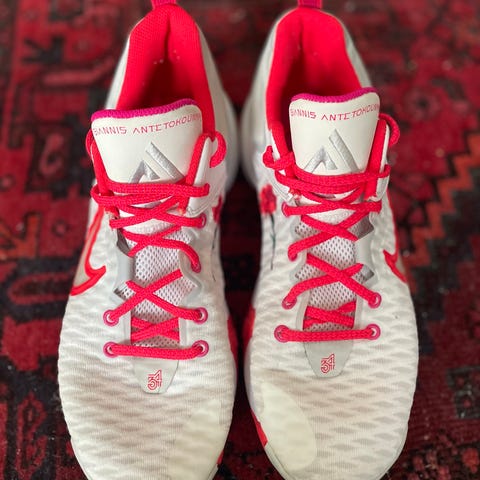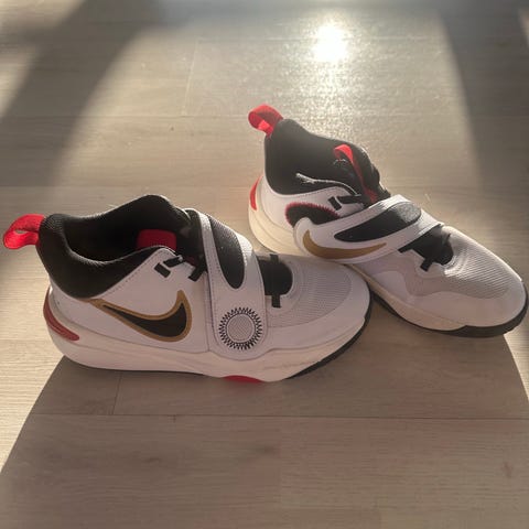 Nike basketsko jente / dame i størrelse 37,5. Skoene har en grønn farge m orange såle og er laget i pustende materialet.