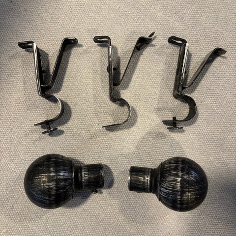 Byttet ut med vanlig stang. Liten bit knakk av på ene festet, men henger fint. Brukt til gardiner som var for tunge for denne typen stang.