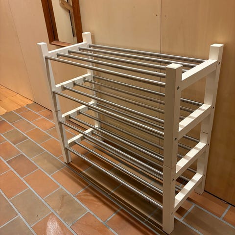 Brukt skohylle. Synlige merker på platen på toppen. Men ingen skader på møbelet