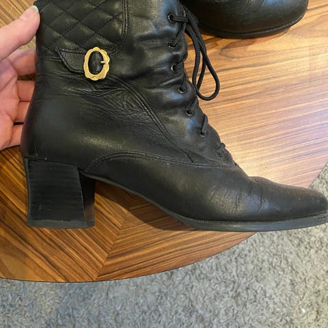 Svarte Gabor støvletter i skinn. Str 35. Pent brukt. Jeg har hatt spesialsåler, og finner derfor ikke igjen den originale innersålen, men la i en skinnsåle.