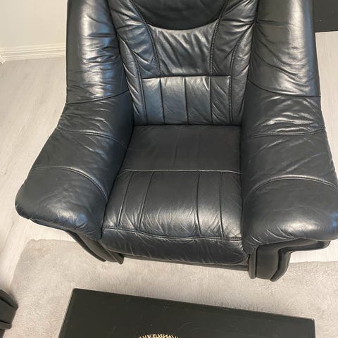 Vi kjøpte denne sofaen for ca 30 000,- for flere år siden, fra HomeLiving, interiør- og møbel-showroom, på Veiby gård i Skiptvedt. Butikken solgte «varer fra Sørafrikas mest innovative varehus og produsenter». Sofaen er spesialbestilt fra Sør-Afrika og er laget av tykt og svært slitesterkt skinn. Den har en nydelig brunfarge på skinnet. Selv om vi har hatt den i flere år, har den ikke blitt slitt, men får bare en stadig finere patina. Det følger også en skinnpuff med sofaen. Er du på jakt etter en pen og samtidig slitesterk skinnsofa, kan dette være den du leter etter. Denne sofaen klarer du ikke å slite ut!