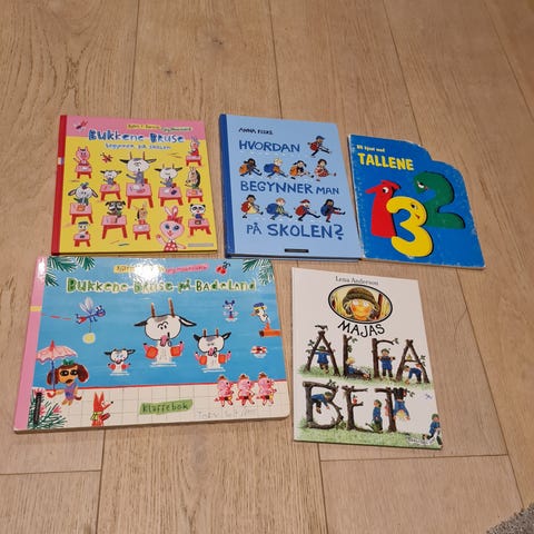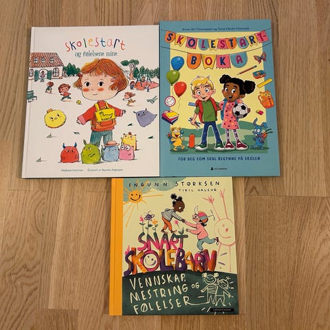 Bokpakke med lettlestbøker og bøker med skolestart som tema. Selges samlet. Pent brukte bøker. Kan sendes mot at kjøper betaler frakt.