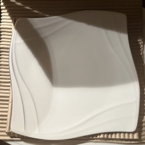 Tallerknene er pent brukt, men har normale bruksmerker i form av «riper». Den ene tallerkenen har et merke (se bilde).