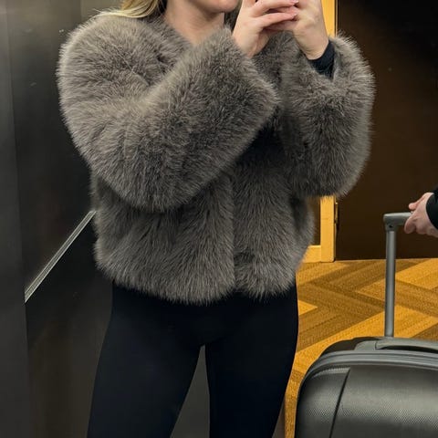 Det er 2 lommer foran og 3 hemper til å lukke jakken med.