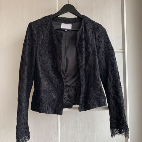 paljetter jakke i størrelse 38/M, svart farge. Jakken er dekorert med paljetter og laget for kvinner. Brukt en gang. Kjøpt for 30 år siden. Like hel og pen.
