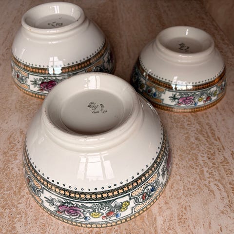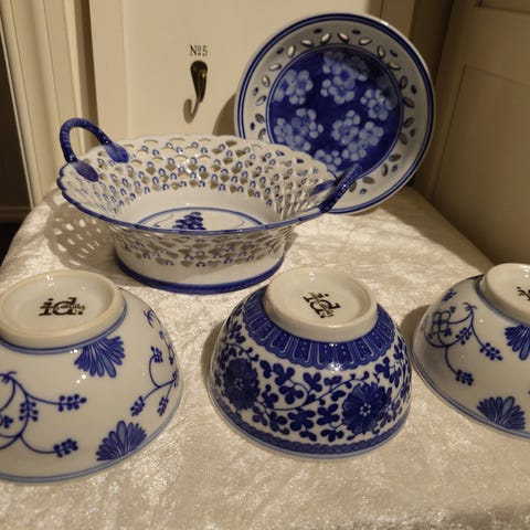 Selger fem vakre, dekorative japanske skåler. De er helt ubrukt.