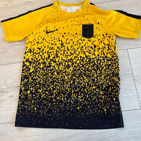 Nike France Mbappé fotballtrøye i størrelse 147-158 (L). Trøyen er blå med gullfargede detaljer, inkludert nummeret 10 og navnet Mbappé på ryggen.