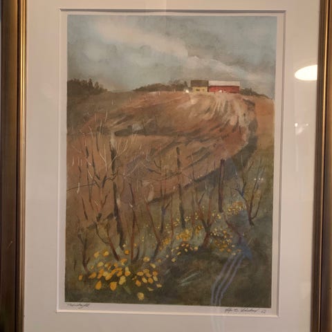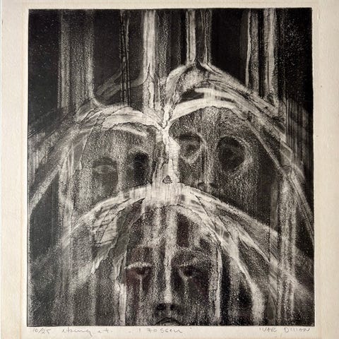Opplag på 150 dette er nr 23 .Tittel er Tanke . Yttermål på ramme er bredde 53 cm og høyde 75 cm .Pris 1500