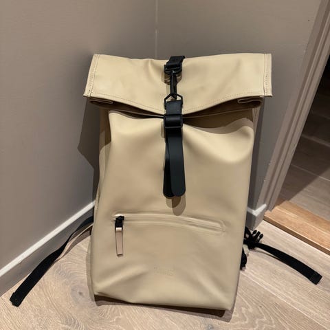 Rains ryggsekk med lokk som kan rulles sammen med Rains sin signatur kabinlås. Romslig hovedrom, liten glidelåslomme foran og eget PC-rom. Justerbar skulderstropp og brystreim. Sekken er vannavvisende. Fargen er svart.