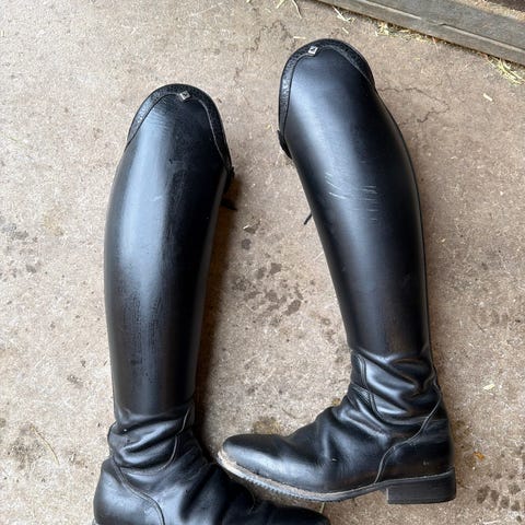 Str. 39 i fot, 48cm høye, leggvidde venstre 38cm, høyre 37,5cm. Tilsvarer ca 39MA L.