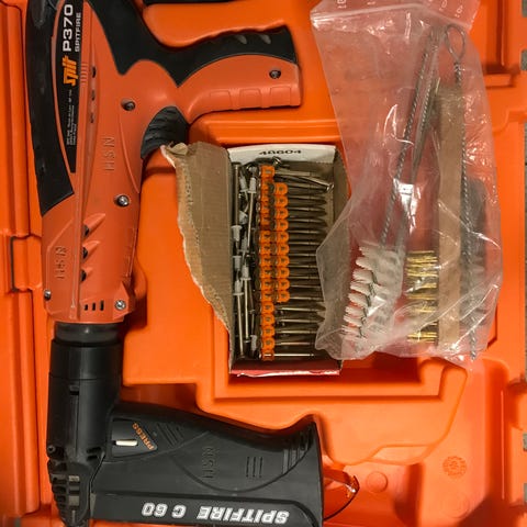 Selger en Spit P 370 Boltepistol til betong veldig lite brukt fungerer som den skal 5 pakker med spiker 2 pakker er helt nytt 2 pakker med skute