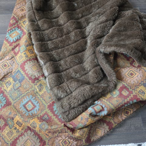 Nydelig spesialsydd pelspledd (av fuskepels) med puter. Brunfarget