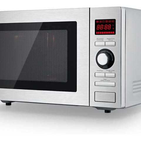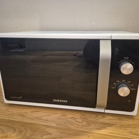 Mikrobølgovn, airfryer og vitrineskap selges samlet.
