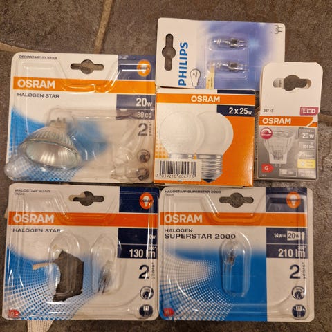 Ubrukte halogen stiftpærer selges billig. 40 for 7 stk. Kan sende med eller uten fiks ferdig.