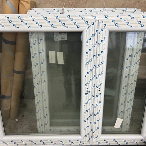 Hus- eller Hyttedør uten Karm . Døren har vindusfelt med flere ruter og er laget i tremateriale. Mål er 2020mm x 935mm