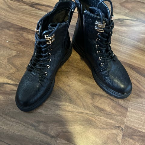 Even&Odd støvler i størrelse 36. Støvlene er svarte med grønn såle og har en blank finish. De har elastiske sider for enkel på- og avkledning og en solid hæl.