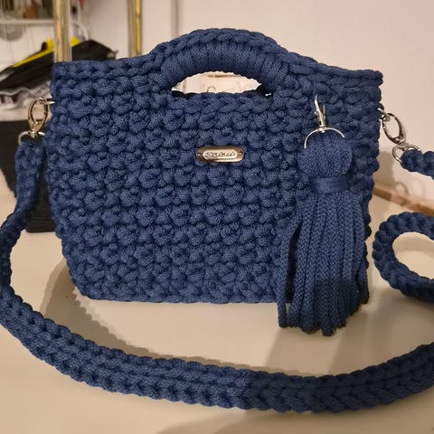 Nydelig håndlaget heklet veske i solid kvalitet. Den har lukkeknapp og en avtagbar reim, så du kan bytte til en annen stil eller lengde hvis du ønsker det.