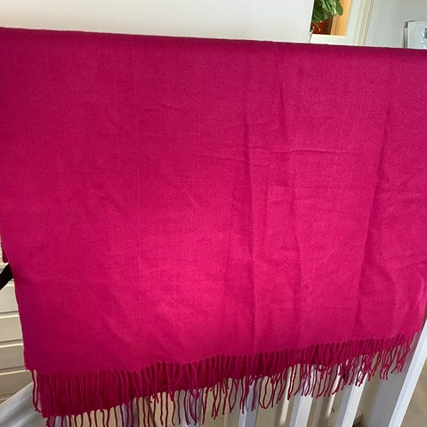 Veldig anvendelig, pent og lett skjerf i lin. Nydelig rosafarge. Kun brukt et par ganger.