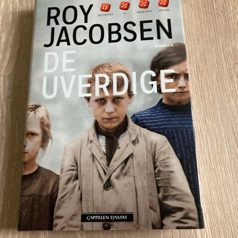 Roy Jacobsen De uverdige er en bok. Den har et omslag med bilde av tre personer. Boken er skrevet på norsk og inneholder tekst relatert til historien om karakterene på omslaget.