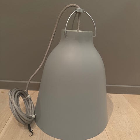 To stk Fritz Hansen Caravaggio P2 pendel i 3-lags munnblåst opalhvitglass med grå stoffledning fra Fritz Hansen. Farge: hvit. Mål: H: 33,7 x Ø 25,8 cm. Lyskilde: E27 maks. 42W. Design: Cecilie Manz.