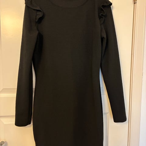 Sort kort kjole fra NA-KD med ballongermer. Lengde til rett over knær. Superfin, flatterende passform, med midje.