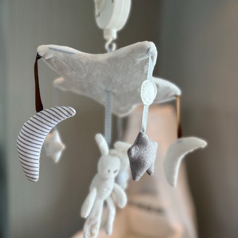 Musikalsk sengeuro med et lekent design. Den har en integrert spilledåse i et sakte tempo. Perfekt til barnesengen eller stellebordet.