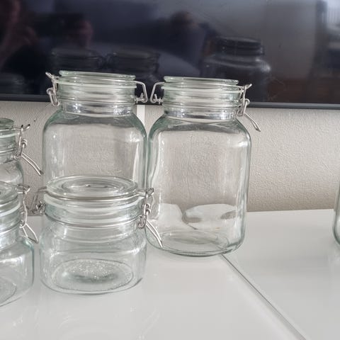 Forskjellige glasskrukker med lokk