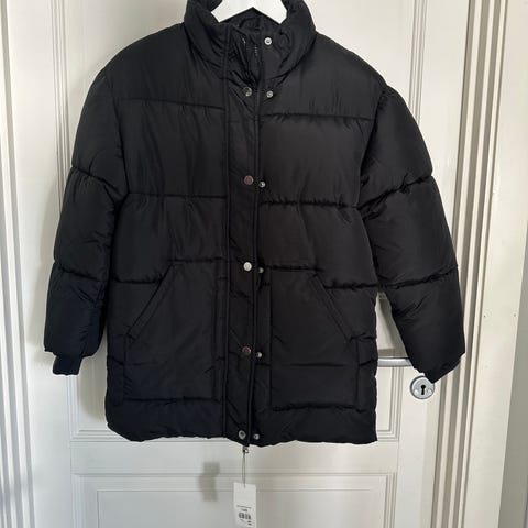 KappAhl vinterjakke i størrelse 146 for gutt. Jakken er svart og laget av polyester. Den har glidelås foran, hette med snøring og ribbestrikkede mansjetter. Passer til kaldere vær.