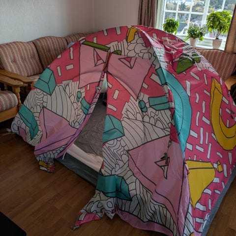Gulvet kan taes av og vaskes, event så kan teltet også brukes uten gulv.