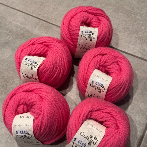 Har 4 ubrukte nye nøster og et restegarnsnøste på rundt 73g