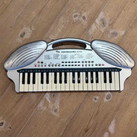 SK MK-931 elektronisk keyboard med innebygde høyttalere og digital skjerm. Tastatur med flere funksjoner som rytmer, metronom, volumkontroll og justerbar tone. Passer for musikkøvelser og innspillinger.