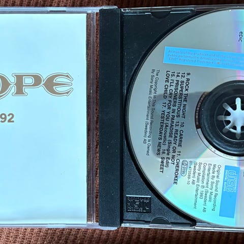 Selger Europe 1982 -1992 CD til 50 kr + frakt.
