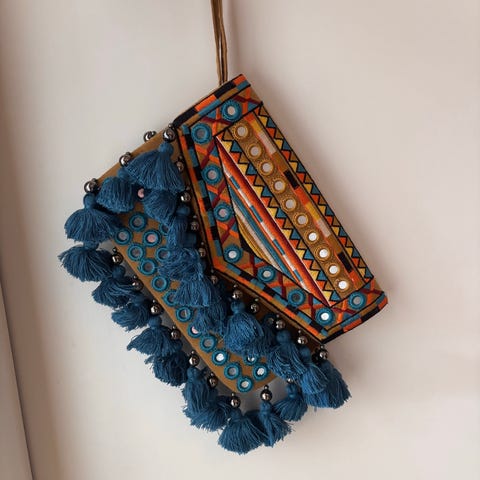 En nydelig håndlaget Skulder veske, som man kan ha enten med dobbel lenke eller son cross body veske. Gull farged av gull nagle studs, og full pyntet av div fargerike gem natursteiner! Krystall pyntet veske!