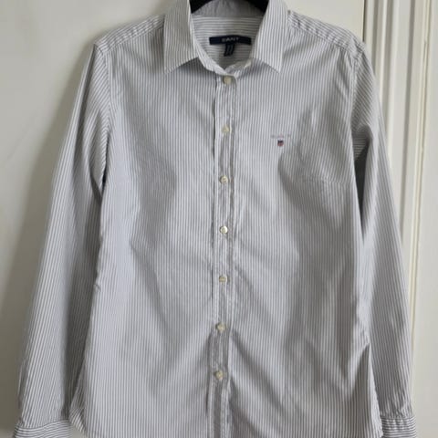 GANT skjorte i blått, laget av bomull. Passer for kvinner i størrelse 36. Skjorten har en klassisk slim design med knapper og krage.