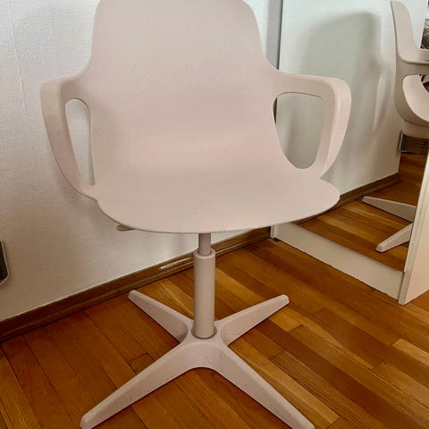 Både ryggstøtte og setehøyde er regulerbar. Trukket i cordfløyelstoff.
