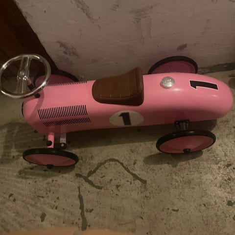 Det står rødt farge i pakken, men selve bilen er rosa.