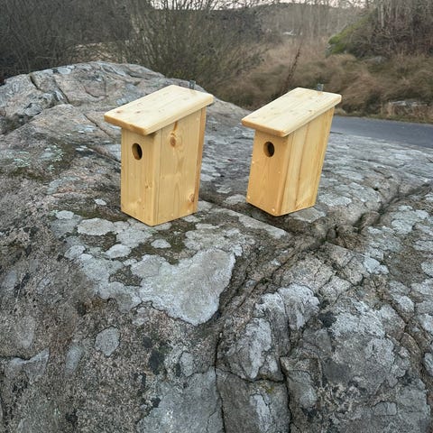 Hjemmelaget biehotell mål: H 35cm B 10 cm D 10 cm med veggfeste