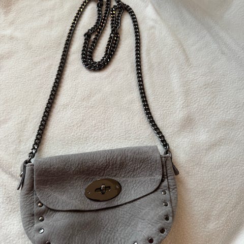 Bronseveske med "sølvlenke" Pent brukt, ett rom. 14 cm lengde, 11 cm høyde.