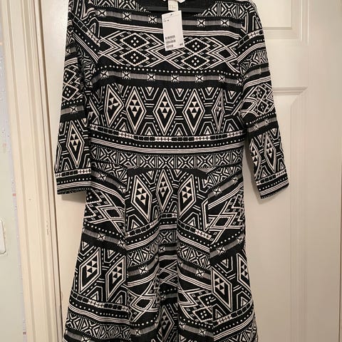 H&M hverdagskjole i størrelse M, flerfarget med mønster. Laget av bomull, designet for kvinner. Passer til daglig bruk.