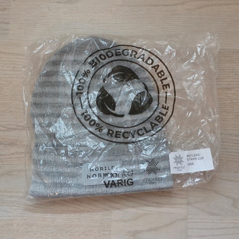 Morild merinoull lue med refleks i rosa. Pent brukt.