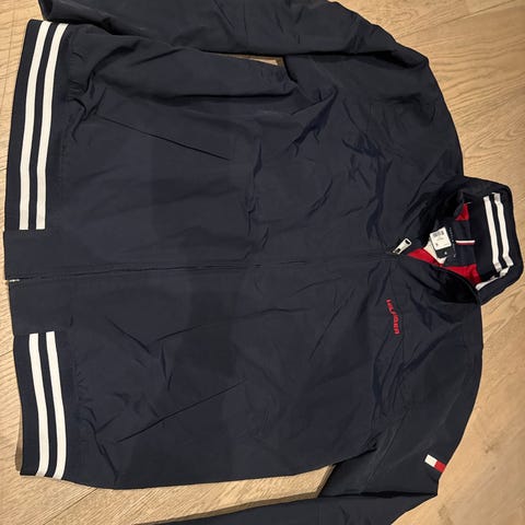 Tommy Hilfiger fleecejakke i størrelse XL med flerfarget design. Laget av fleece materiale, egnet for menn.