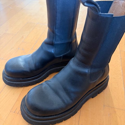Lufter et par ikoniske Black Bounce Derbies fra Bottega Venetas FW20-kolleksjon, designet under Daniel Lee. Chunky, moderne silhuett med rå såle og luksuriøs finish. Lite brukt – pent holdt og naturlige bruksmerker. Kjøpt via Finn (forrige eier handlet fra Vestiaire Collective. Mangler boks og dust bags.