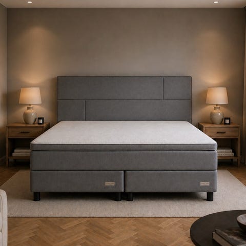 Selger 180 seng med sengegavl. Ene siden er medium og den andre er hard. Nypris 61 000,- legger ved bilde av info på sengen.